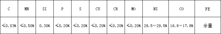 该合金是国际通用的典型的Fe-Ni-Co硬玻璃封接合金。经航空工厂长期使用,性能稳定。主要用于电真空元器件如发射管、振荡管、引燃管、磁控管、晶体管、密封插头、继电器、集成电路的引出线、底盘、外壳、支架等的玻璃封接。在应用中应使选用的玻璃与合金的膨胀系数相匹配。根据使用温度严格检验其低温组织稳定性。在加工过程中应进行适当的热处理,以保证材料具有良好的深冲引伸性能。当使用锻材时应严格检验其气密性。